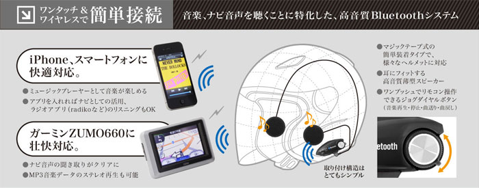 前回紹介したヘルメット内蔵のヘッドフォンにワイヤレスで接続しました。